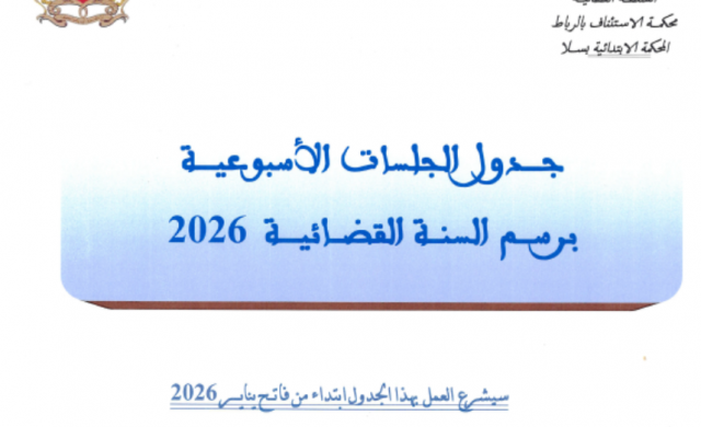 جدول الجلسات الأسبوعية برسم السنة القضائية 2026